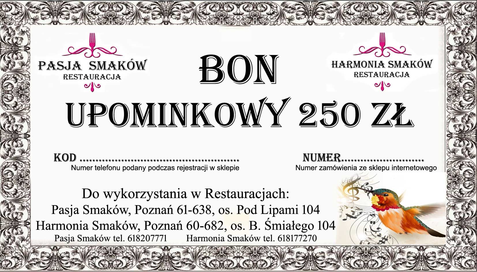 Wykup voucher za określoną kwotę, wydrukuj i wpisz w miejscu wyznaczonym numer telefonu podany w chwili rejestracji w naszym sklepie i numer zamówienia. Jest to kod potwierdzający ważność vouchera.